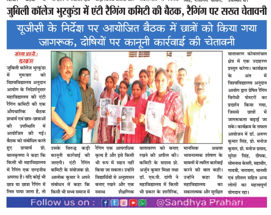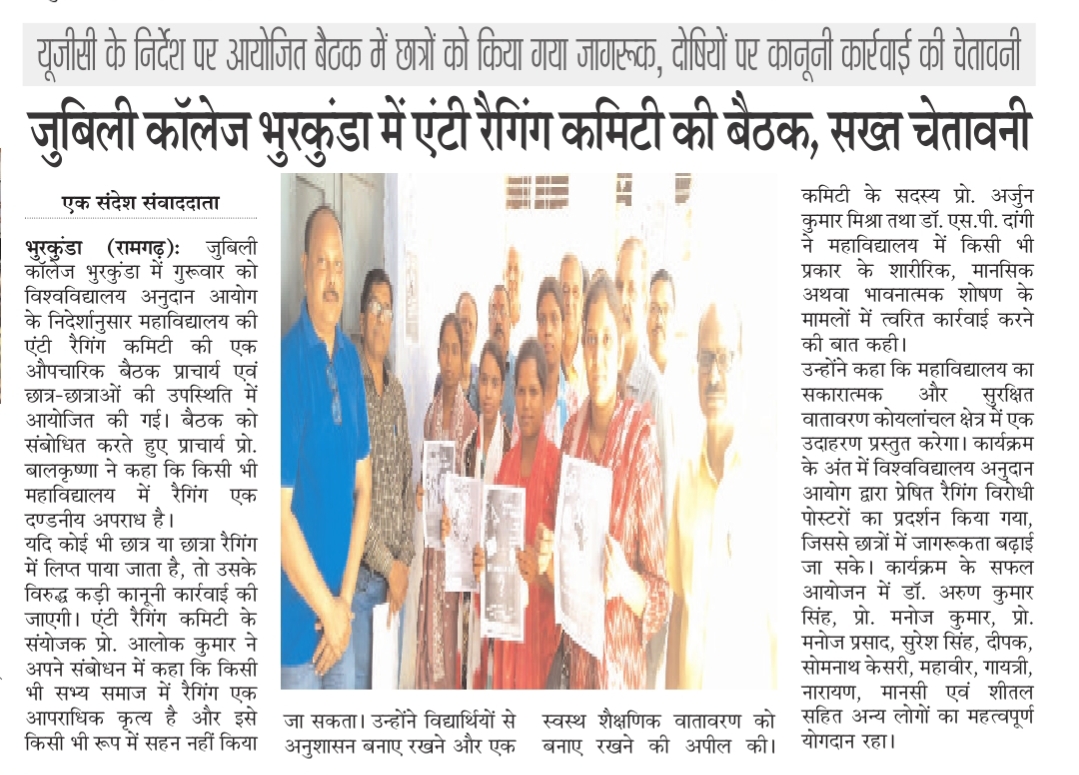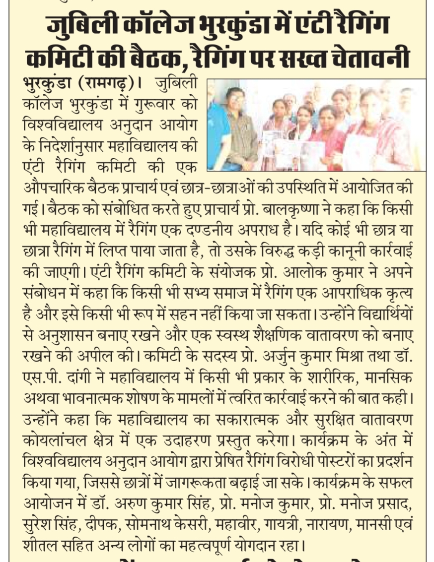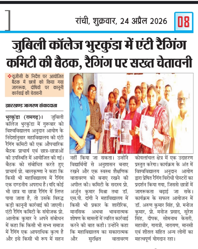 Jubilee College, Bhurkunda is situated in the, Lap of a Tribal populated village Dhundwa, Dist –Ramgarh, Jharkhand which was established on 24th December 1981 on the occasion of silver Jubilee Celebration of N.C.D.C. The CCL Employees played pivotal role in the establishment of the college by donating their salaries.